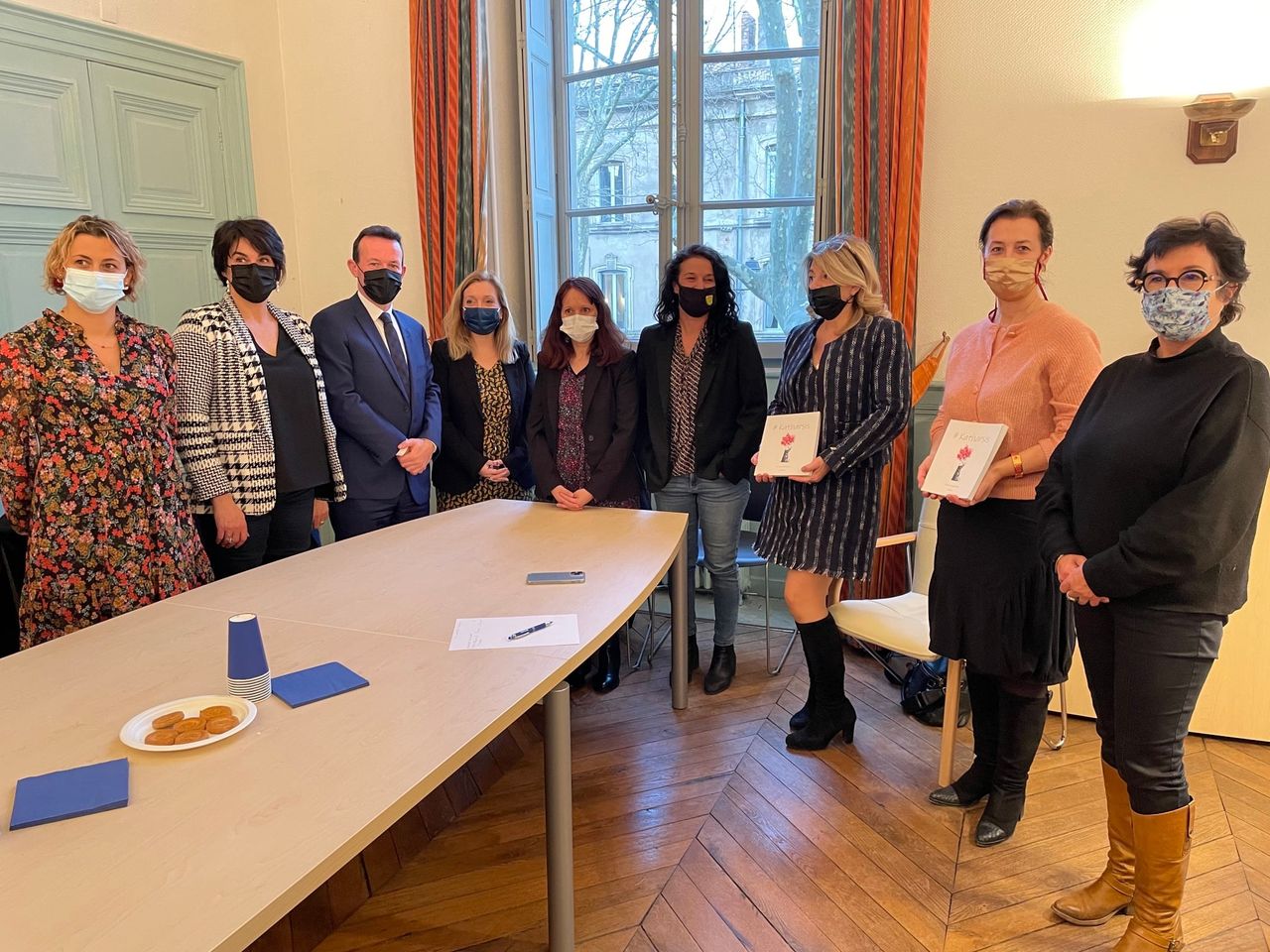 A l’occasion de la Journée Internationale des Droits des Femmes le 8 mars 2022, la Présidente du Tribunal Judiciaire de Carcassonne, Madame Emmanuelle Wacongne m’a convié à participer à une table ronde, au sein du Conseil départemental d’accès aux droits de Carcassonne, portant sur l’accompagnement des mineurs victimes de violences sexuelles et l’exercice de leurs droits, en présence de Madame la Procureure Générale, de Madame la Représentante Académique, ainsi que de Madame Julie Serres, auteure et victime, accompagnée par sa psychanalyste Madame Sarah Elkahaz. J’ai offert à mes interlocutrices plusieurs exemplaires de l’ouvrage réalisé par Julie Serre avec l’aide de caricaturistes français de renom, intitulé « Katharsis » afin d’encourager à la libération de la parole des victimes.